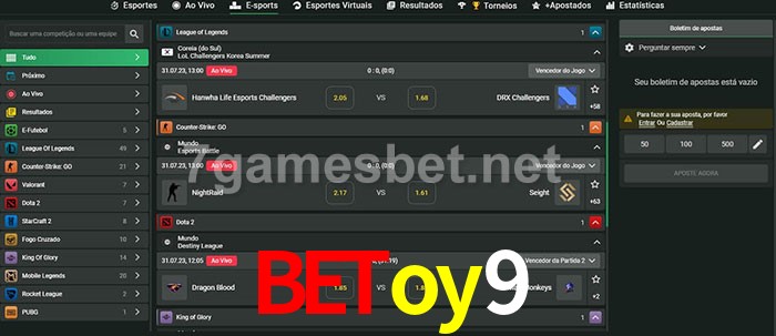 A aposta betoy9 oferece aos jogadores a experiência mais conveniente de apostas em eSports!